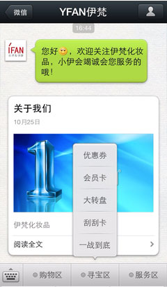 扫一扫,关注前途无量微信营销平台官方微信,体验前途无量微信营销平台智能服务